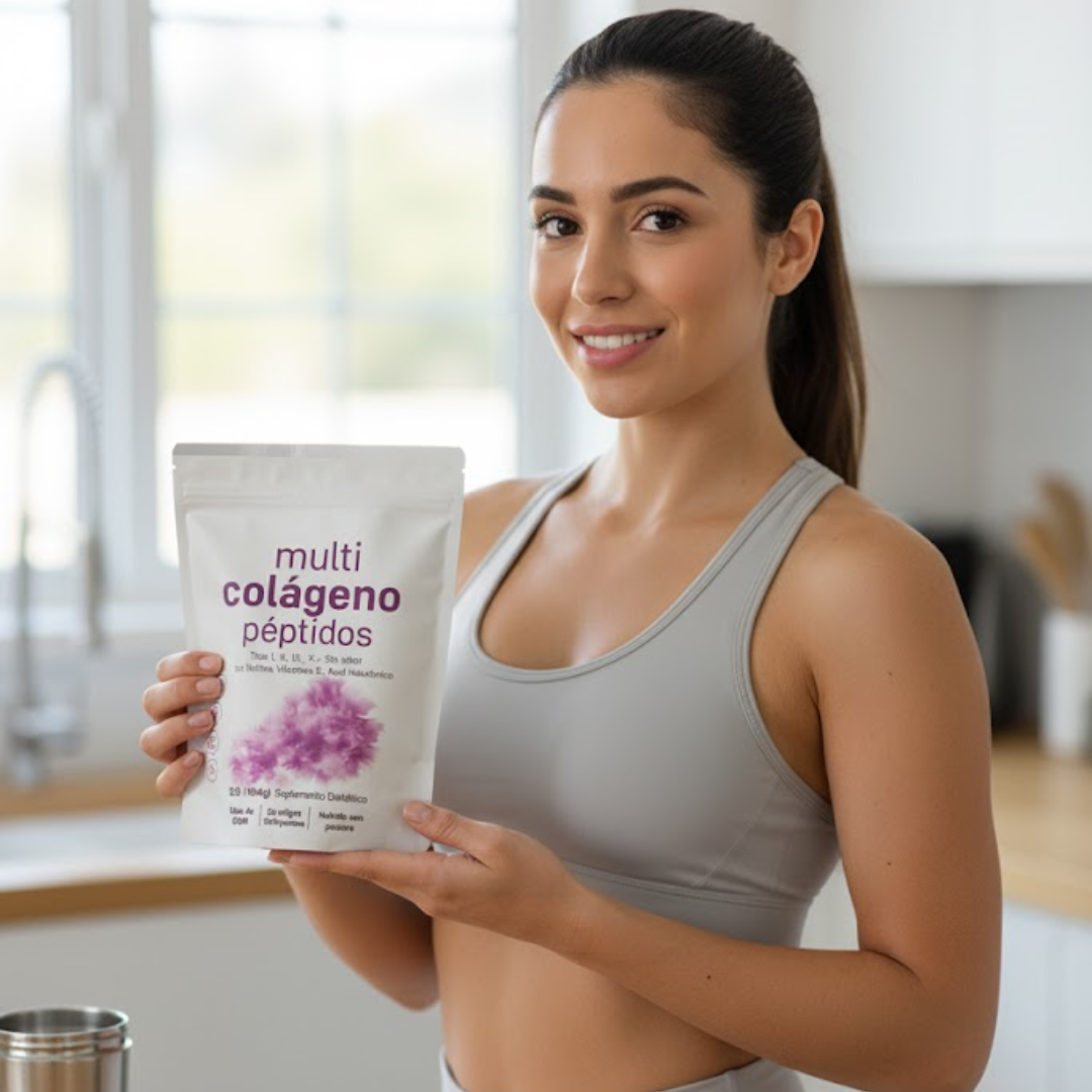 Creamos un suplemento de multicolágeno premium formulado para ayudarte a recuperar firmeza, vitalidad y bienestar desde adentro, con una rutina simple: solo dos cucharadas al día.